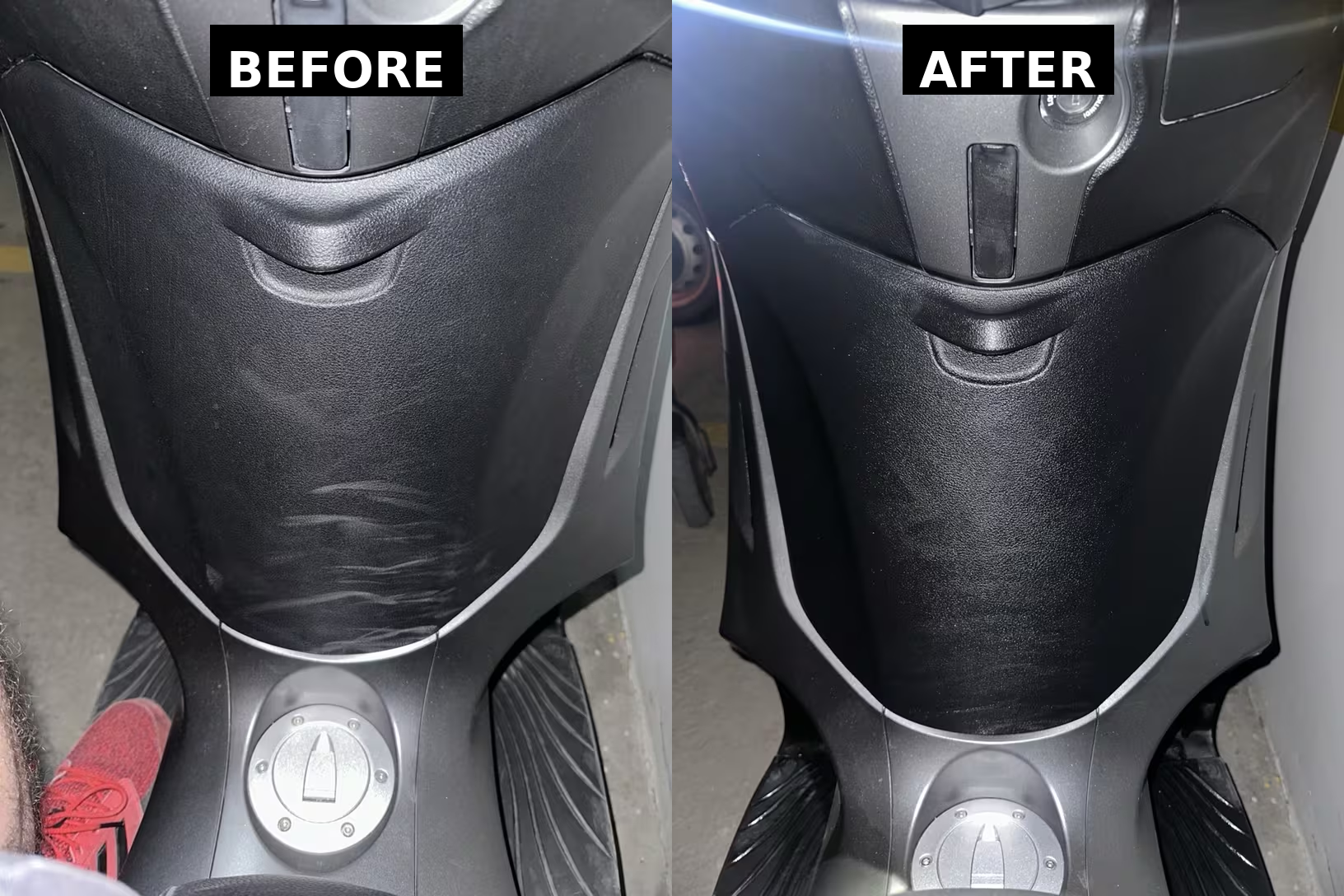 Restoration: Instantly brings faded grey bumpers and door handles back to a deep, rich "Showroom Black."